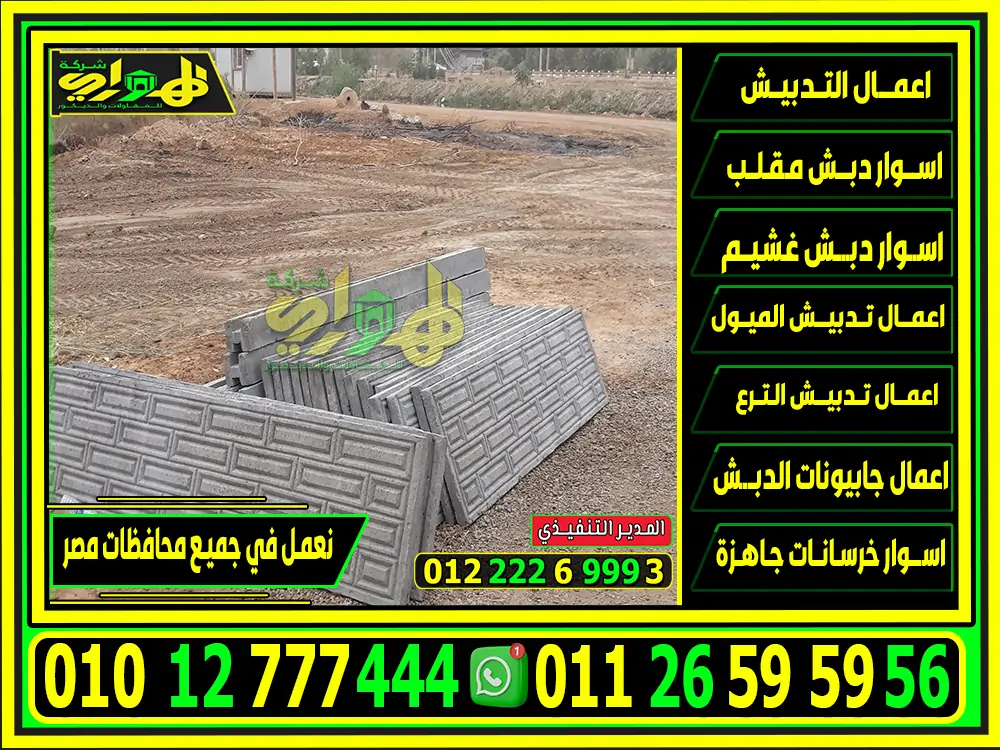 تأتي اسوار خرسانية جاهزة المتوافرة لدينا في مؤسسة الهواري الرائدة في أعمال تركيب الأسوار وتدبيش الترع والميول وغيرها، بالمواصفات القياسية طبقا للمعايير العالمية دون أية أخطاء، تتمثل فيما يلي: